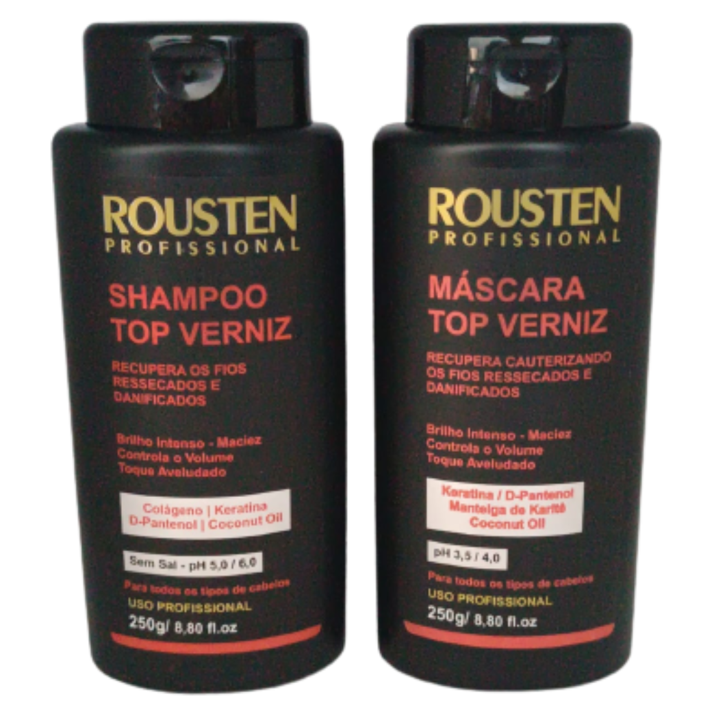 Modo de Usar: Aplique shampoo no cabelo molhado, massageando suavemente da raiz as pontas até a formação de espuma. Enxágue. Se preferir uma limpeza mais profunda, repita todo o processo. Para um melhor resultado após o uso do shampoo aplique a MÁSCARA TOP VERNIZ ROUSTEN e siga o passo a passo.