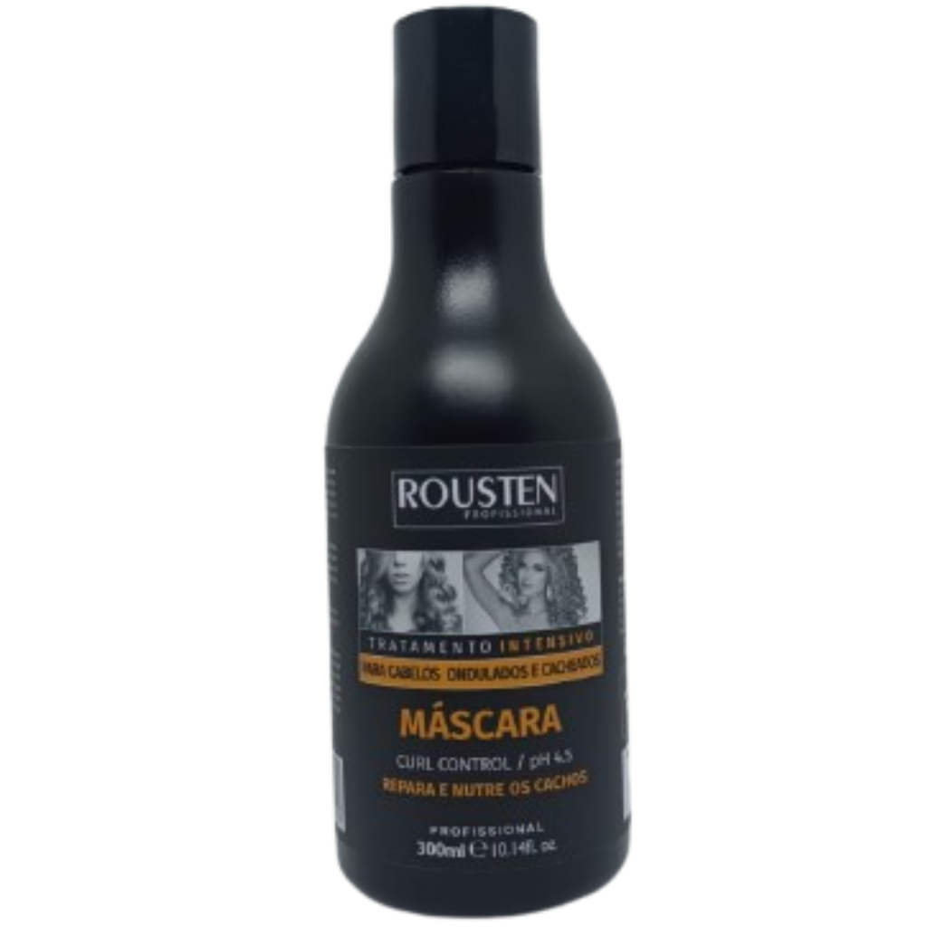 ROUSTEN PROFISSIONAL CURL CONTROL Máscara para cabelos cacheados ou ondulados combina reparação e nutrição duradoura que resgata a elasticidade dos fios, elimina o frizz e proporciona cachos definidos e macios ao longo do dia.