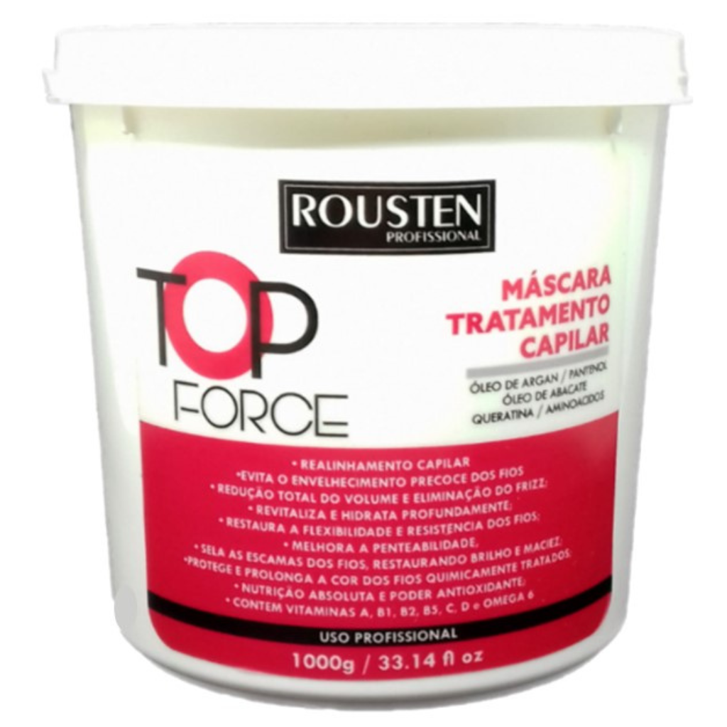 Indicação: Mascara Tratamento Capilar TOP FORCE ROUSTEN, é indicado para todos os tipos de cabelos (normais, secos, danificados e quimicamente tratados). Possui formula com mix de mistura dos principais ativos encontrados no segmento para tratamento capilar profissional, se tornando um produto com excelente nivel de resultado, deixando o cabelo com toque especial.
